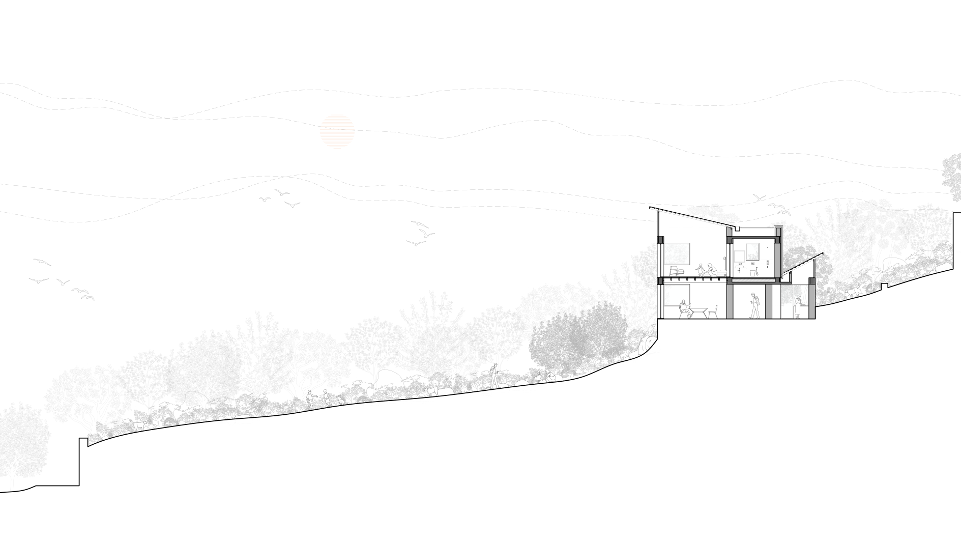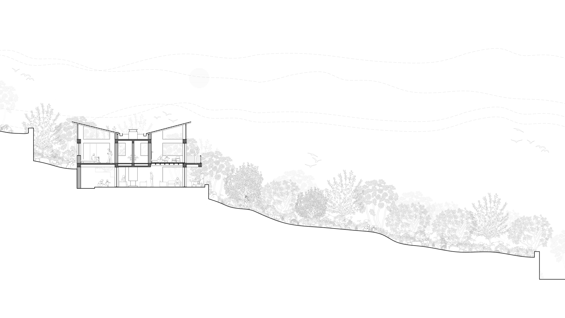 ‘terraced tranquillity’ embodies a peaceful home nestled among flowing green terraces, providing sweeping views of the surrounding hills.